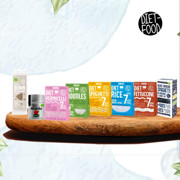 Diet Food propose des aliments naturels délicieux et nutritifs, Bio et sans gluten, prouvant que l’alimentation saine peut être aussi savoureuse. Assortiment varié de superaliments, thés, pâtes sans gluten, soutenus par un logo de feuille verte certifié.