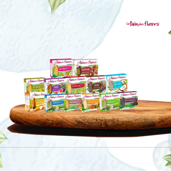 Le Pain des Fleurs offre une gamme de tartines craquantes biologiques sans gluten élaborées sans œuf, sans matière grasse, sans arôme, sans produit laitier, sans levure. Fines et légèrement toastées en surface, leur texture croustillante est inégalée.