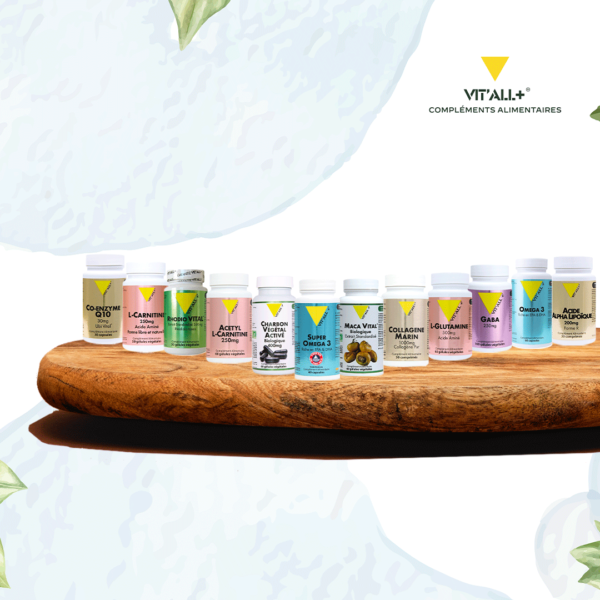 Vit’all+ s’engage de produire des compléments alimentaires de haute qualité nutritionnelle. Fort d’une expérience de 30 ans, tous les produits ont été formulés à base d’ingrédients les plus naturels, innovants, concentrés et Bio disponibles du marché. Une gamme composée de nombreuses références qui répondent à toutes attentes : circulation, beauté et cheveux, sommeil, stress et dépendance, forme et vitalité…etc.